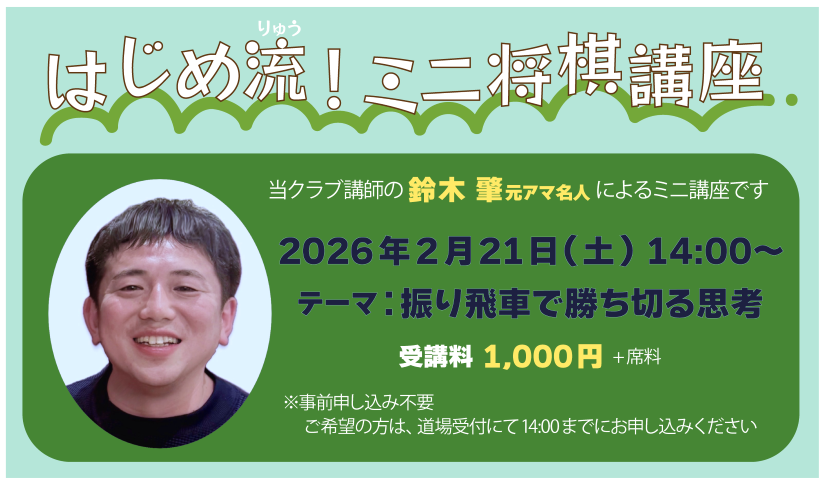 当クラブ講師の鈴木肇第72期アマ名人のミニ講座です!
